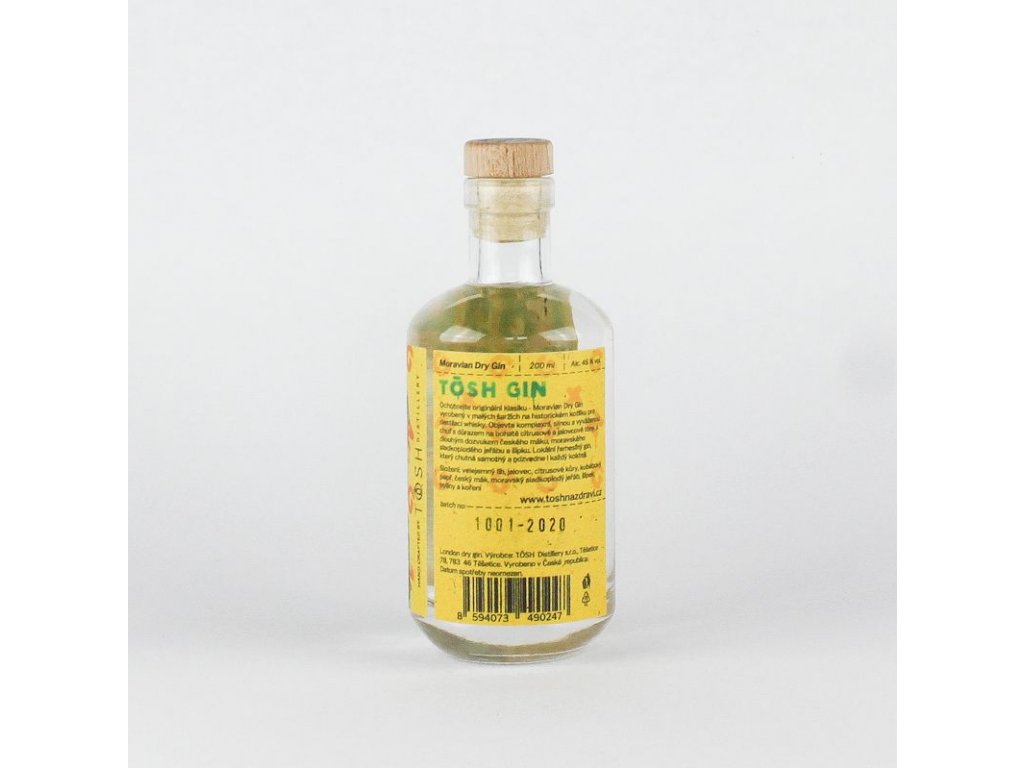 Moravian Dry Gin ladili v TÖSH Distillery dlouhých 18 měsíců než vyladili pořádný silný gin - TÖSH GIN. První výrobní batch bylo pouhých 160 lahví, takže klasicky hank krafted gin vyrobený v malých šaržích na historickém kotlíku, který se používá pro destilaci whisky. V tomo dry ginu objevíte komplexní, silnou a vyváženou chuť s důrazem na bohaté citrusové a jalovcové tóny, s dlouhým dozvukem českého máku, moravského sladkoplodého jeřábu a šípku.